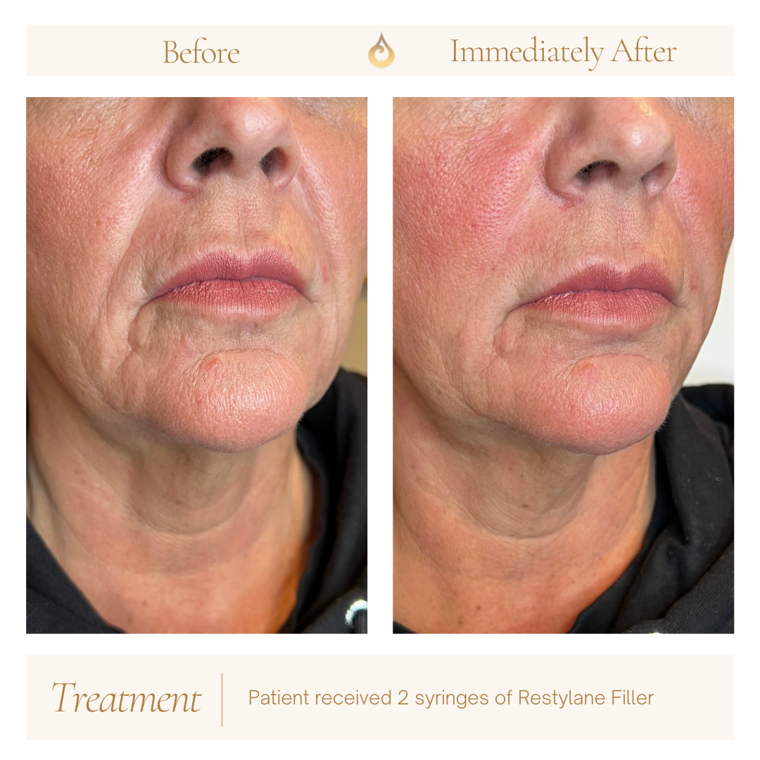 Dermal fillers use hyaluronic acid through injections to restore volume and fullness in the face.